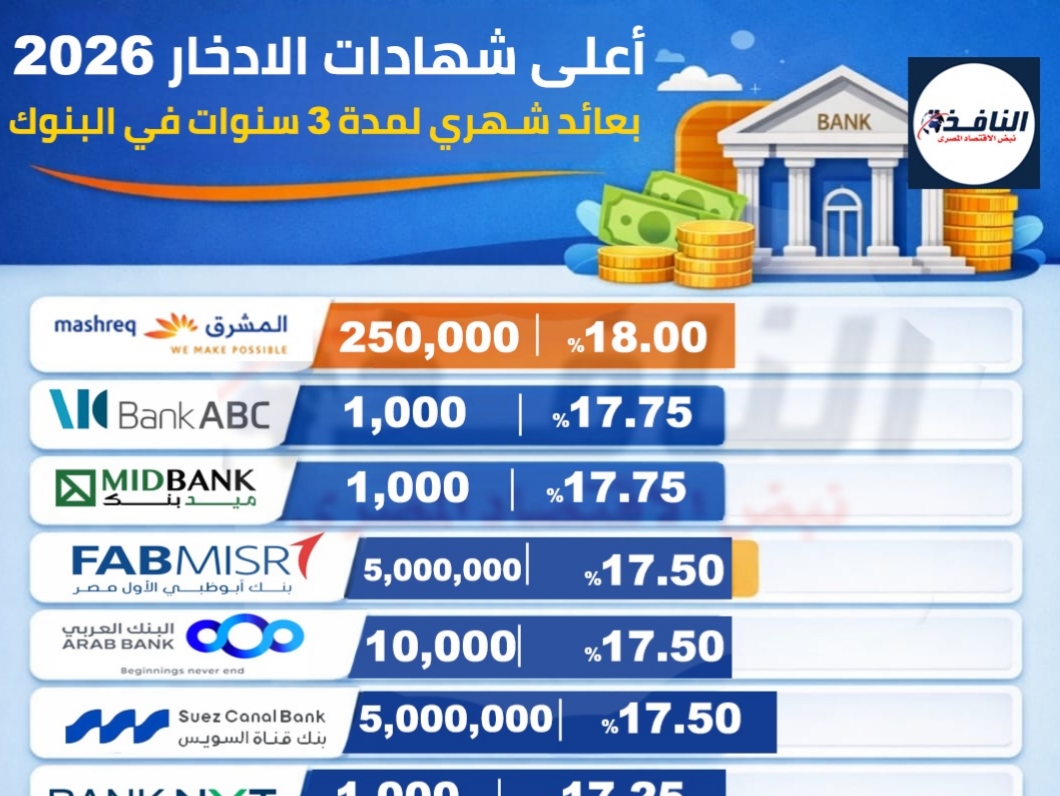 تنشر النافذة في سياق السطور التالية كل ما تريد معرفته عن أعلى شهادات الادخار 2026 بعائد شهري لمدة 3 سنوات في البنوك .