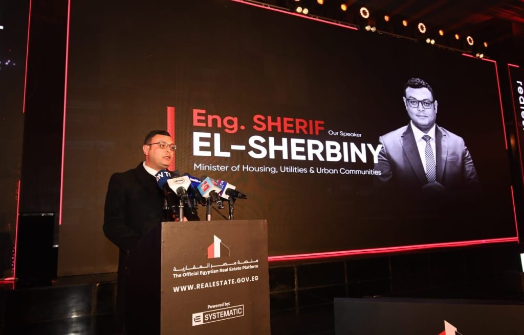 وفي كلمته، أكد المهندس شريف الشربيني، وزير الإسكان والمجتمعات العمرانية الجديدة :” أن الدولة المصرية أخذت على عاتقها ملف التنمية العمرانية والعقارية كأحد الأولويات الوطنية لتشجيع الإستثمار الوطني والأجنبي، حيث تساهم أنشطة القطاع العقاري في الإقتصاد القومي وتتزايد بشكل تدريجي خلال السنوات الأخيرة بفضل المشروعات القومية التي نفذتها الدولة المصرية، كما يعد العقار المصري هو مخزون القيمة سواء للأفراد أو للشركات .